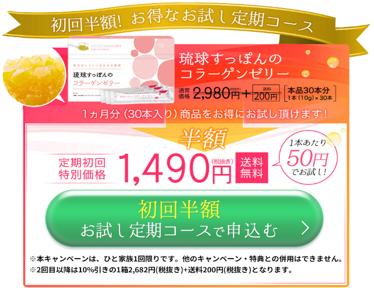 琉球すっぽんのコラーゲンゼリーを50%OFFの1490円で手に入るキャンペーンは在庫がなくなり次第、終了です。