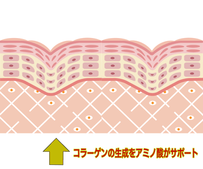アミノ酸には真皮内のコラーゲン生成を促し、肌にハリと弾力を与え、若々しい肌を作ってくれる役割があります。