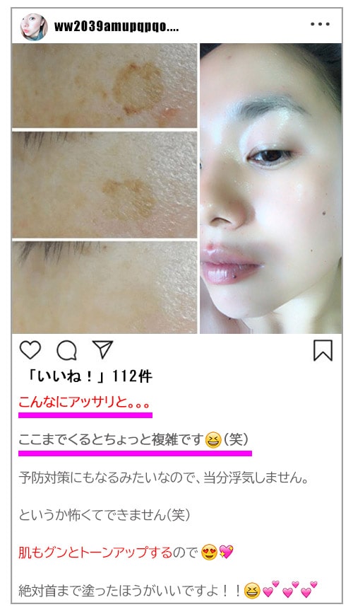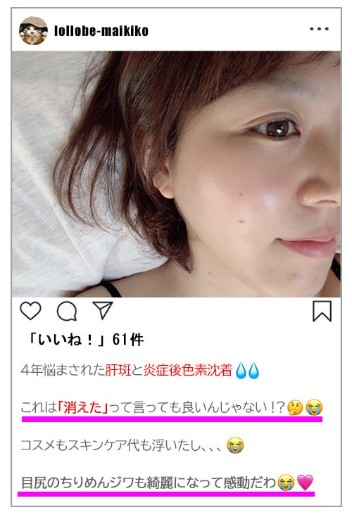 目元の大量のシミやそばかすがみるみる減っていき、うずら肌脱却に成功しちゃったんです…(衝撃)