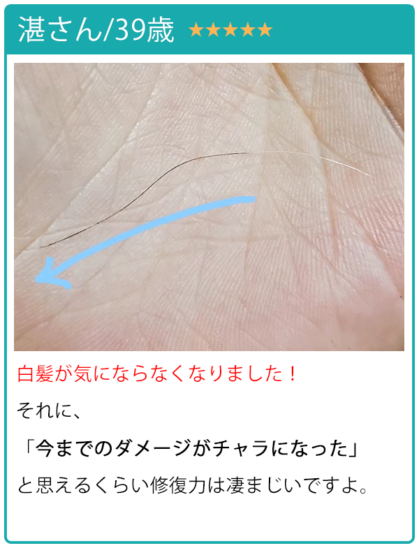 10代の頃からのカラーやパーマもあって、元からパサパサでしたが、白髪染めをはじめてからうねり・絡まりなどが深刻になってきました💦