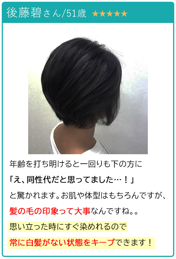 もちろん、 男女兼用 なので「染めるのメンドクサイ。。」という旦那さんやお父さんにもお勧め。