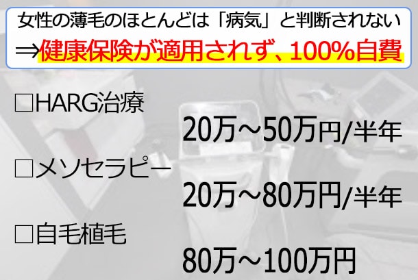 薄毛は男の人だけの悩みだと思っていただけに日に日に薄くなっていく頭も見るのは、本当に辛かったです。