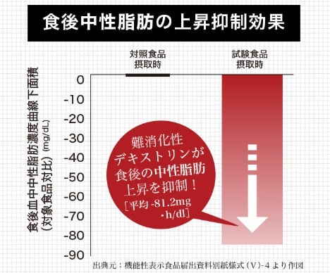 難消化性デキストリンには、この 食後の血糖値の上昇を抑制 する効果が研究データーで認められており、