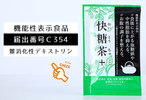 快糖茶+は、安全性及び機能性の科学的根拠に関する情報などが消費者庁長官へ届け出られた “機能性表示食品”で です。