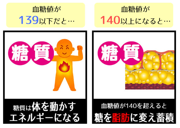 そのため、体重の増減は血糖値140が境目と言われています。