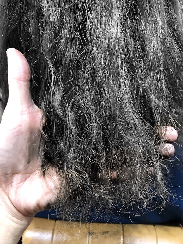 中でもダメージが酷く、髪も「スチールウールかっ!」ってくらいガチガチパサパサで、うねりまで…