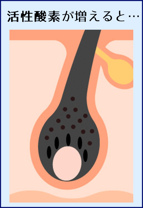 本来、活性酸素は加齢・ストレス・生活習慣の乱れなどで徐々に増えていくのですが、爆発的に活性酸素を増やすのがヘアカラー剤。