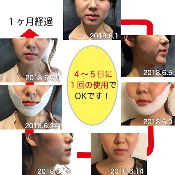 娘にプレゼントされて使ったのですが、マスクを取った1分後には「これどこで買えるの?!」と娘に連絡していました。でも、そのぐらい見た目が違うんですよ。それからの変化はもっと早かったです。 たった4回で顎の下のたるみが消え、20代の頃のような輪郭に戻りました! (50歳・北海道)
