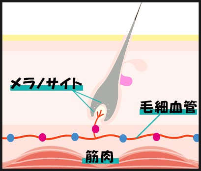 メラノサイトは原料(酸素・栄養)不足で