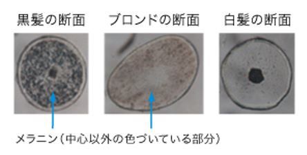 もともと髪は白い毛でこの白い毛に「メラニン」という色素が着くことによって色が決まるんだそう。
