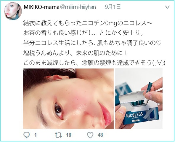 タバコに対する風当たりが強くて、(特に女性)禁煙するためにニコレスにしました。でも、普段3ミリのタバコを吸っている私にはちょっと強すぎかな?と感じますが、吸い方で調節できるので良しとします。ずっと紙タバコだったのでアイコスを充電するのが少しめんどくさいです。でもおかげで、肌も綺麗になったし、歯に黄ばみも付かないし、臭いもつかないから総合的には全然ありだと思います。