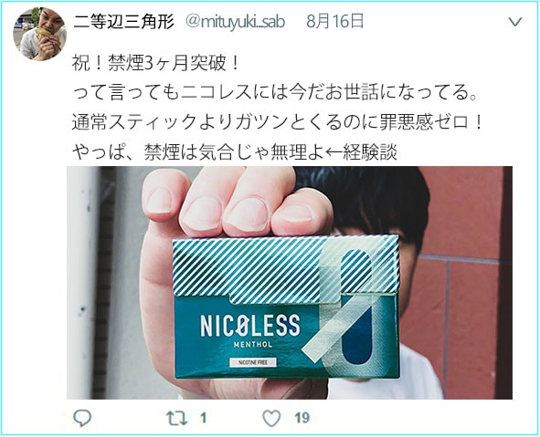 でも、吸いたくなった時に「NICOLESS」をなるべく吸うようにしたら、自然とタバコの本数が減っていきました。
