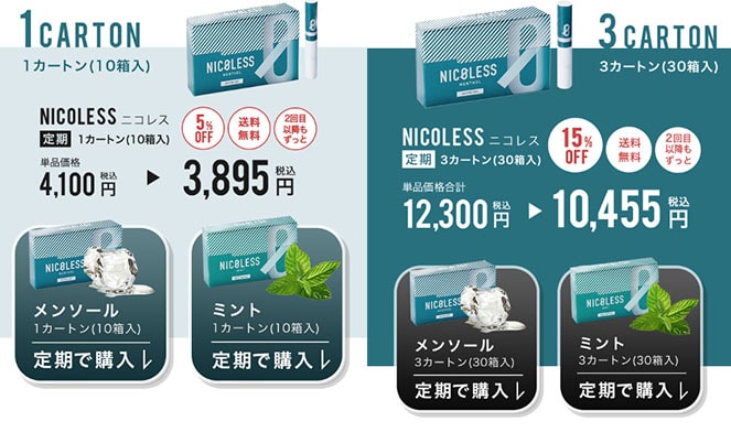 「NICOLESS」はAmazon、楽天、などの通販サイトで購入可能です。(3個セットor1カートンのみ)