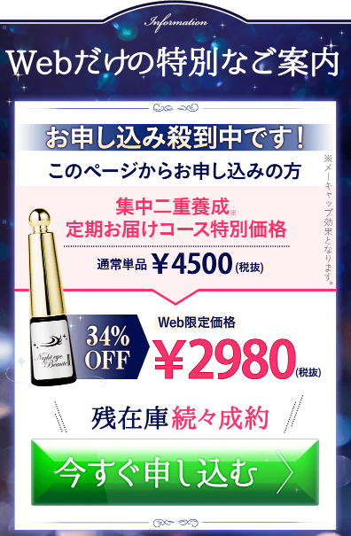 通常価格4,500円のナイトアイボーテですが、お得なキャンペーンを開催しているようなので、取り急ぎシェアします。
