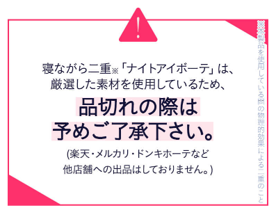 いろんなタイプのまぶたがあると思いますが、ナイトアイボーテは人(まぶた)を選ばない優秀さも兼ね備えているので。。
