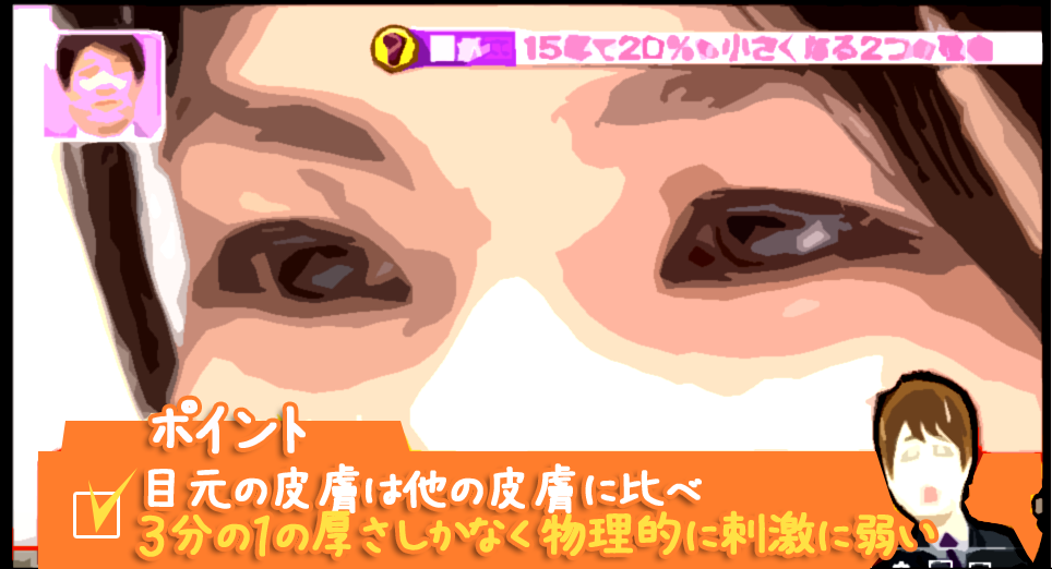 と思うかもしれませんが、目元の皮膚は他の皮膚の1/3の厚さしかないので、長時間付けるほどダメージになります。