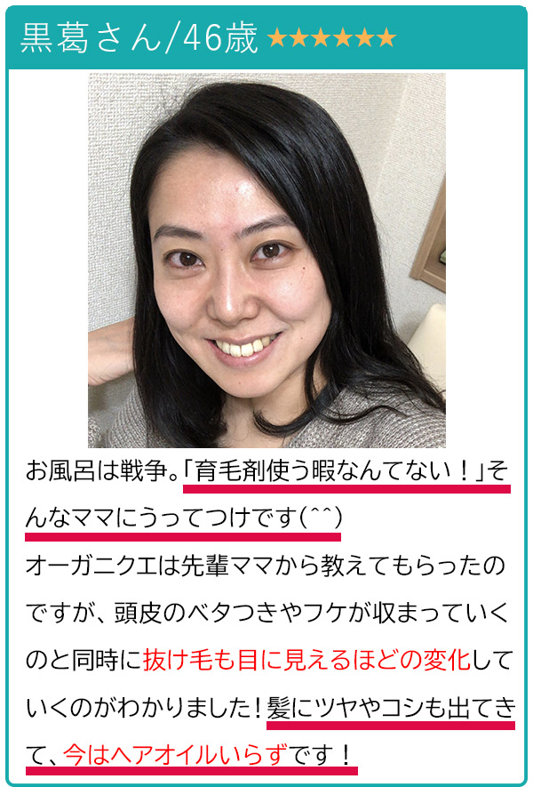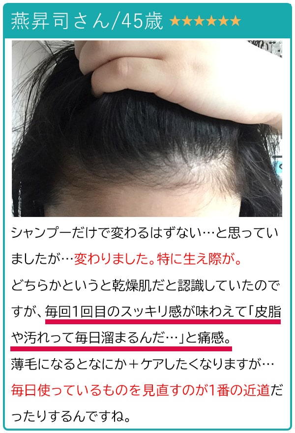 しかも、髪の毛も芯から強くなったようでシャンプーだけでここまで変わるんだと、毎日のケアの大切さを痛感しました。