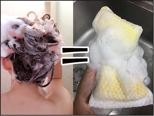 シャンプーの泡立ち成分は「石油系界面活性剤」によるもので食器用洗剤・洗濯用洗剤と同じ成分。