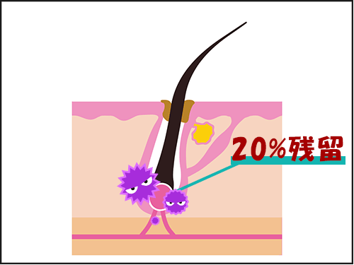丁寧にすすいでも20%は残留し毛乳頭にもダメージを与えてしまうこと。