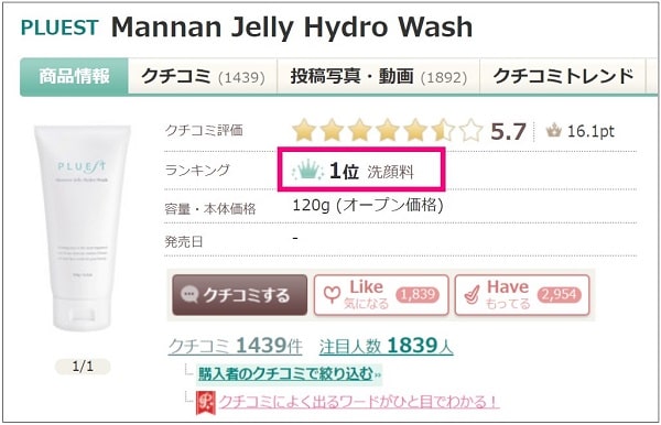 @cosmeでも1位!