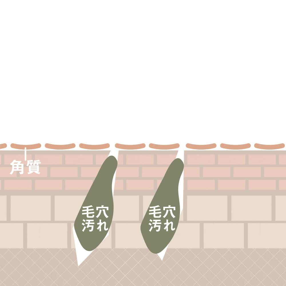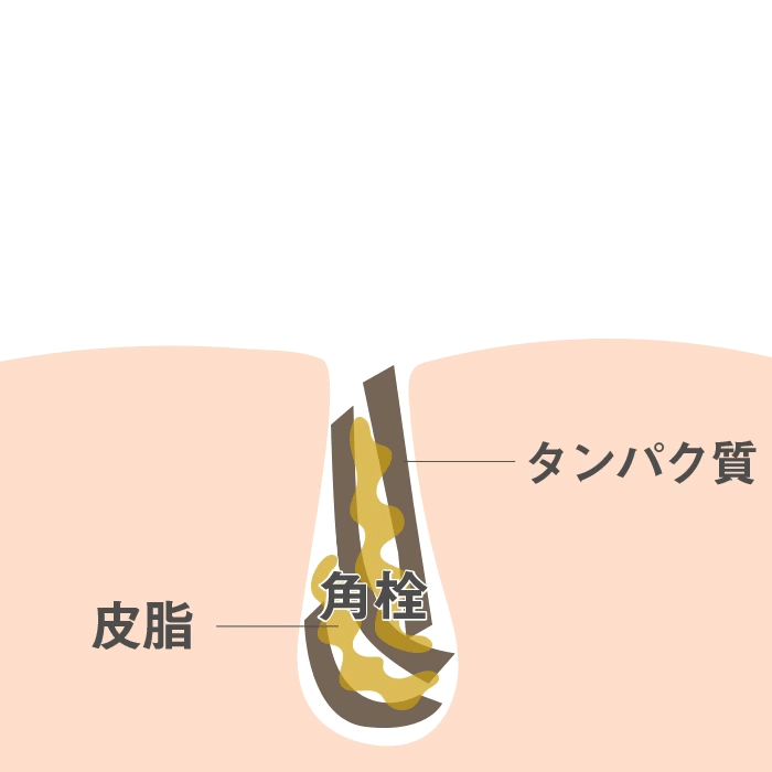 皮脂とタンパク質がカチコチに固まってできる角栓。