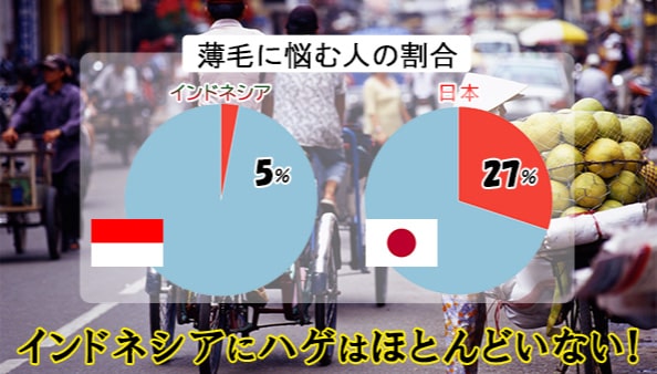 その証拠に、日常的にノニを頭に塗っている原産国のインドネシアでは、薄毛の割合の低さが世界でもトップクラスらしいんです。