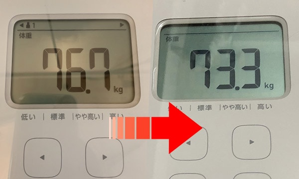 そして驚いたのが、1ヶ月で 体重が3.4㎏減っていた ことです。