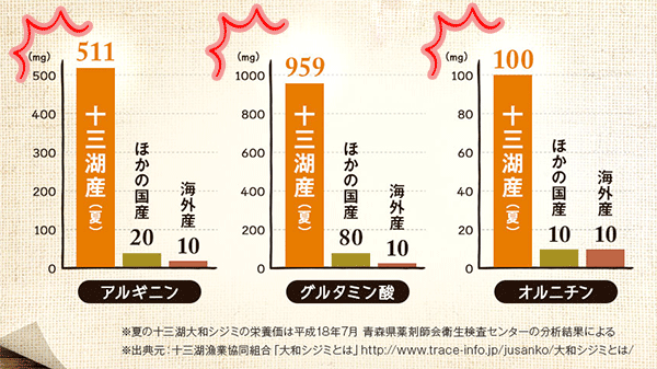 さらに肝障害を改善したり肝臓の再生を促進する働きをする「グルタミン酸」、疲労回復のサポート、血管を拡張し血流を良くする「アルギニン」も豊富に含まれているので、まさに肝臓の救世主!