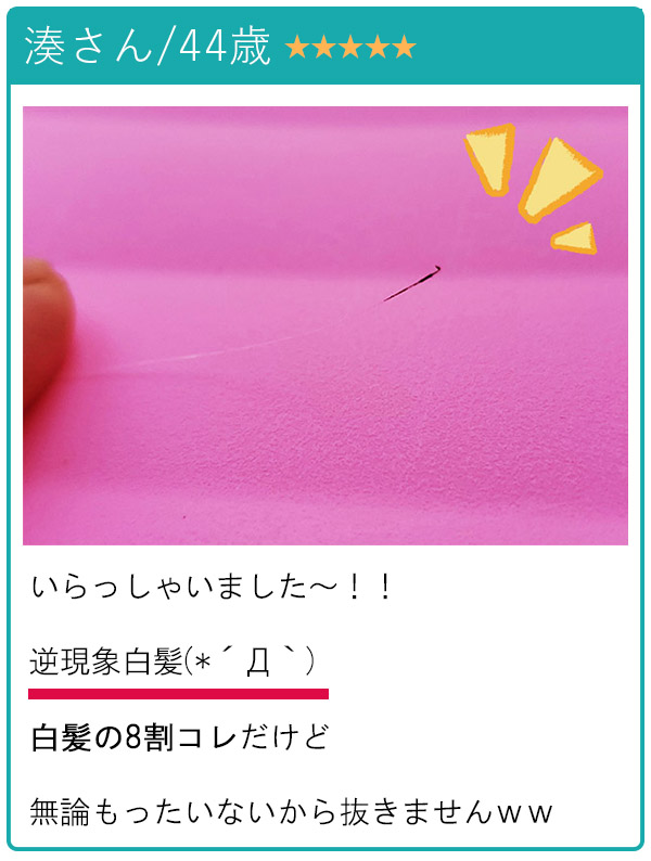 この日を境に根本が黒い白髪が「あ!ここも!」「ここにも!」とどんどん増殖していきました。