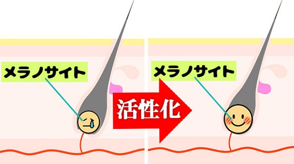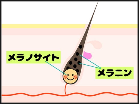 そもそも、髪の毛は毛根にあるメラノサイトでメラニン(黒色色素)を作っています。