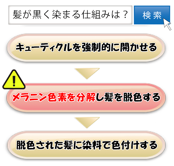 市販・美容室、白髪染め・オシャレ染め問わず、白髪を黒く染める原理はまったく同じ。