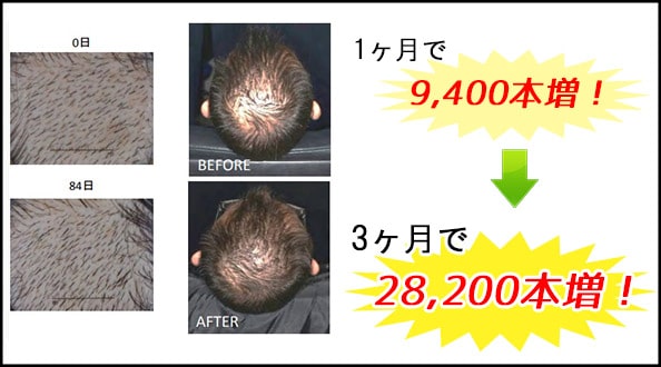 なんと、 髪の毛10万本に対して「2万本」の増毛効果があると実証 されているんです!