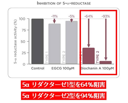 キャピキシルには、5αリダクターゼを阻害する圧倒的な能力があり、ハゲホルモンDHTを抑制することができます。