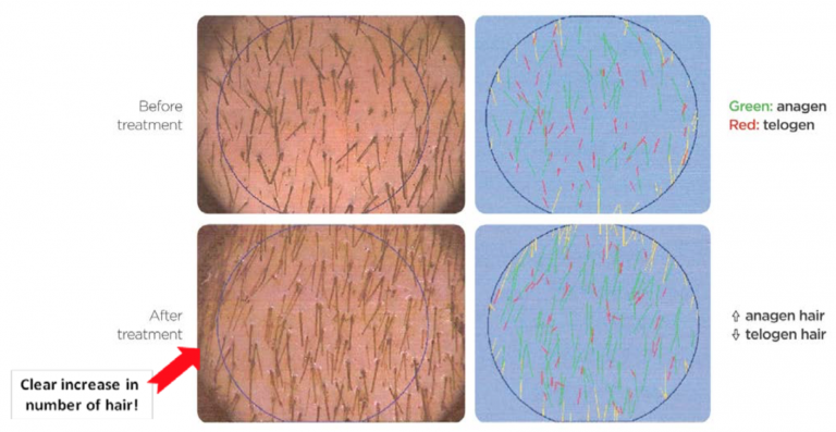 実際に 13%の成長期の毛髪が増加 、さらには 29%の休止期の毛髪が減少 が実証されています。