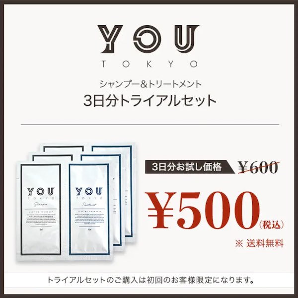 でも、そんなYOU TOKYOシャンプーがお手ごろなトライアルセット販売を開始していたので、取り急ぎシェアしますね!